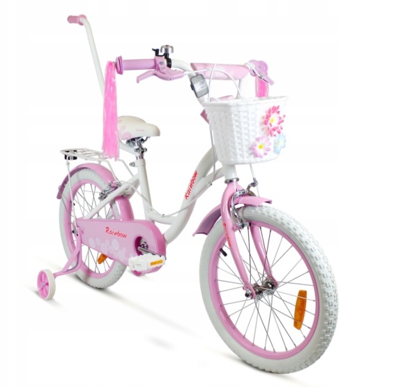 SIROX Rainbow 16 2024 dětské dívčí kolo s košíkem a vodicí tyčí růžové